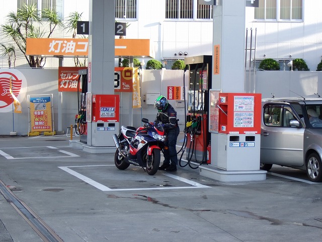 ゲスト参加の社長@CBR929氏。首都高で560円払うのがもったいないと、下道で都内を抜ける兵である。