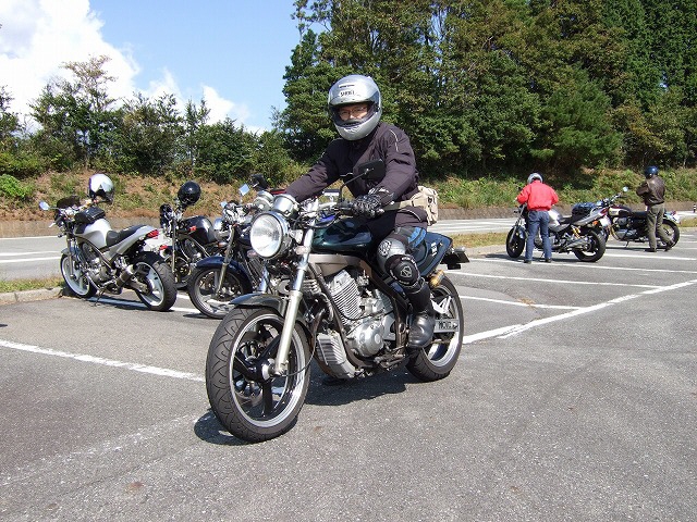 | 「もう10月も下旬だし、寒くなりましたねえ。」なんて話していると、還暦の小次郎氏がひと言。 「なんだ若いのに。俺なんかメッシュだけど、ぜんぜん平k…、ぶあーくしょ!」 一同大ぶわくしょ!(爆笑) いやー、これだけの台数が集まると、全国ヲフみたいだよね。 < まだDNSを根に持っているらしい | ||