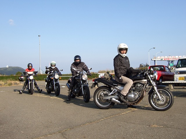 | 湯河原PAで行われていたNap'sのイベントに帰りになんとなーく立ち寄ると、ビッグなサプライズが! すすむ氏が「makotoさん、makotoさん。一条さん、一条さん。」て。はい? なんと、初期型SRX(1JK)のプロダクトデザインを手がけた GKダイナミクスの一条 厚氏にお会いしちゃいました。2004年の全国オフ以来、3年ぶりの邂逅です。 「新しいV-maxは開発が遅れててねぇ…。今どきのバイクは速すぎ。またシングルを造りたいよ」 なんてことをしみじみ仰ってました。 ここで、33氏、ちー氏、だる嬢、harada氏とお別れ。本日もお疲れ様でした。 お家に帰るまでが遠足ですよ〜。 | ||