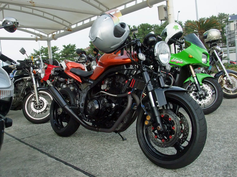 今回、初参加のシモキ氏のマシン。海軍色に塗り替え、アメリカっぽく仕上げています。