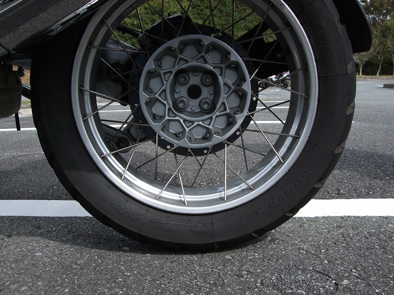 途中で何故か遅れていたS部氏のBMW GS1150。 リアホイールを固定するボルトが4本全て緩んでいたそうな。 S部氏:「死ぬかと思ったよ。てへっ」 |