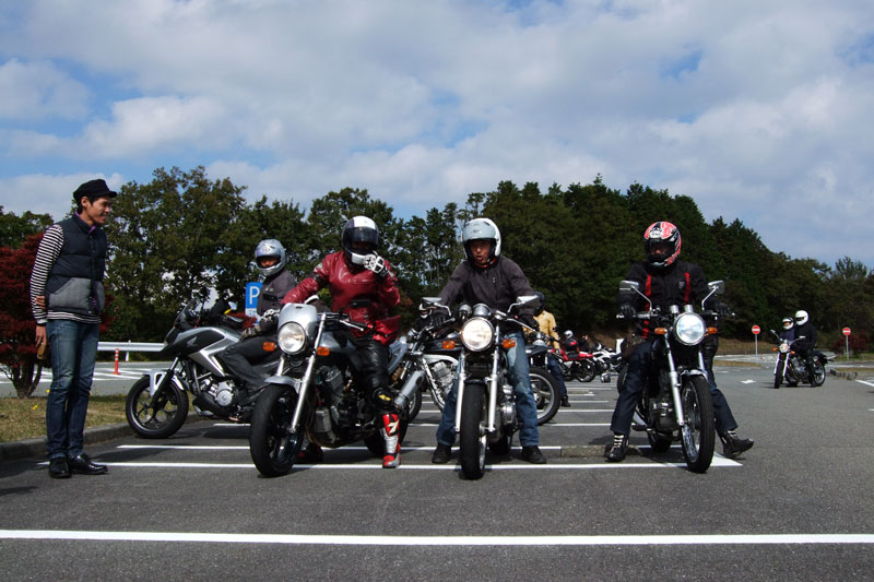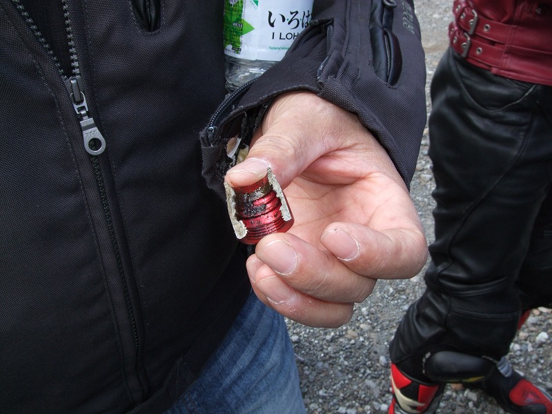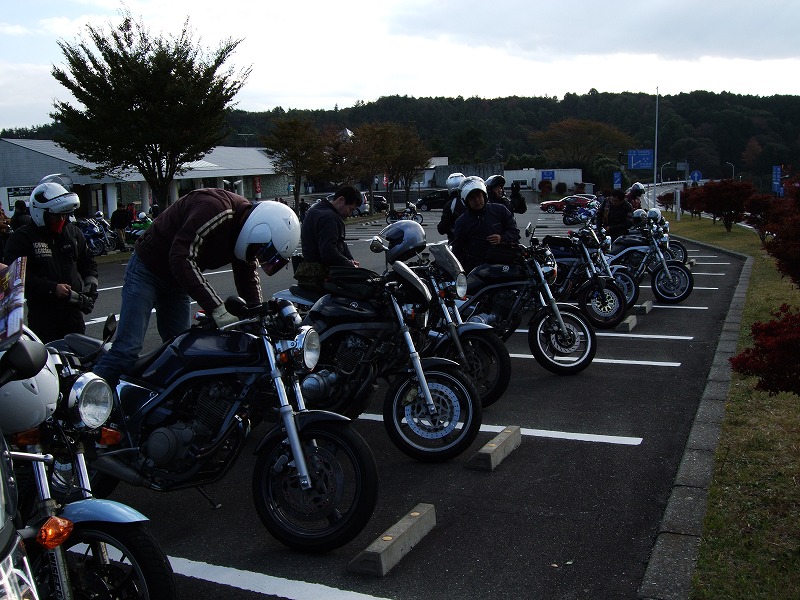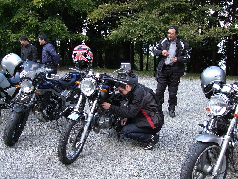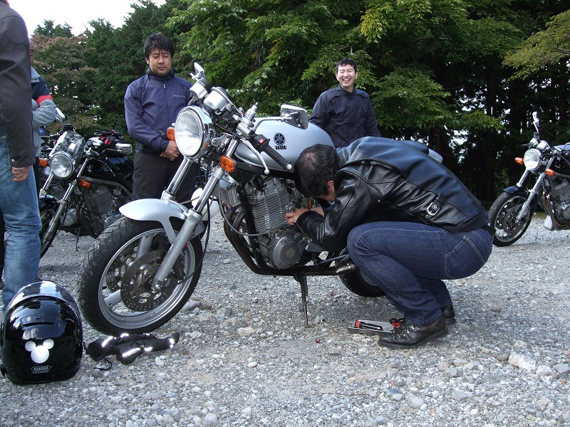 無事、みんな戻ってきたところで三々五々の自然解散です。 gizmo氏:「DUNLOPに“なんでこんなもん(カーカス)が出てくるんだ”て文句言うべきですよ」 アタマの悪いのは放っておいて、とっとと家路を急ぐたぁまちゃん氏。お気をつけて〜w |