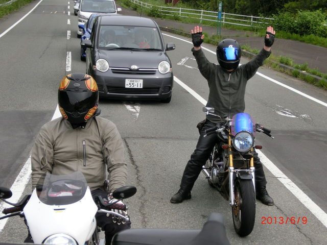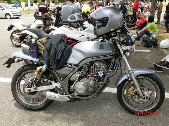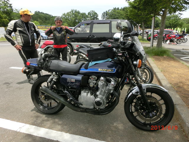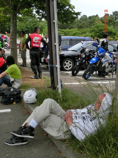 知るひとぞ知る変態大明神、まめしば氏のGS1000。(後ろに映っているのはつねお氏とけんさん) で。この力尽きてお昼寝中の鳴神氏の写真がなにげにお気に入りw |