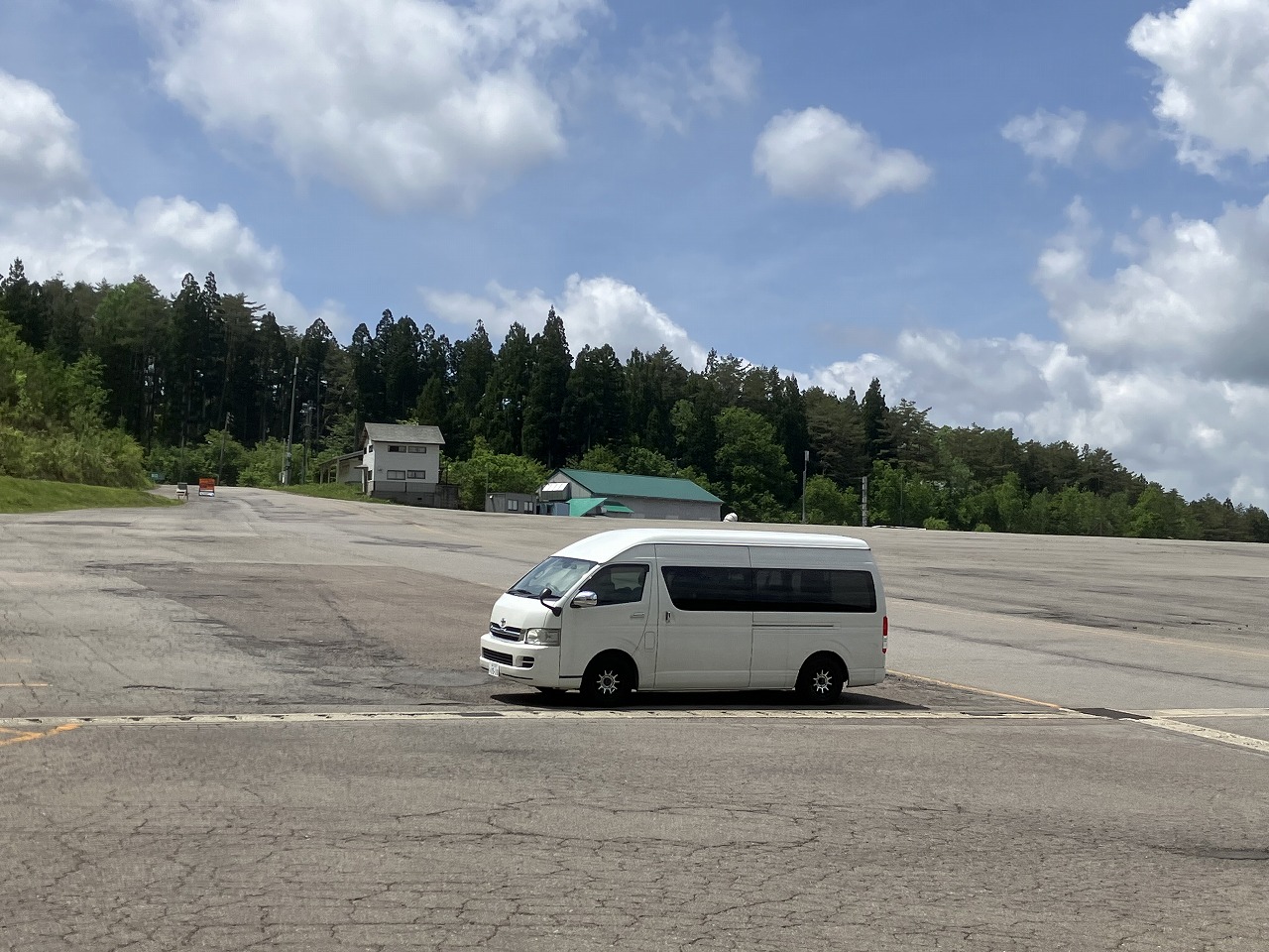広い々々駐車場に、ぽつんと佇むハイエースロング。