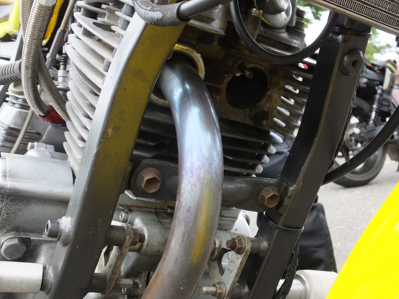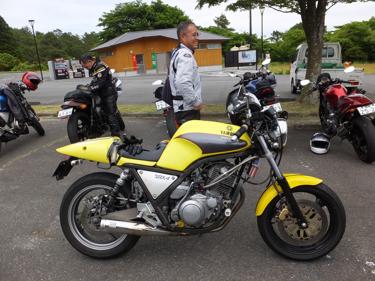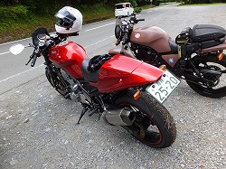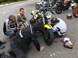 んで、雨ん中を複数台のSRXが走ったら必ず出てきます。プラグリークで止まるマシン。 経年劣化で硬化したプラグケーブル&キャップは、濡れると漏電して火花が飛ばなくなっちゃう。 IGコイルと合わせて消耗品なので、一度も交換したことがないひとは気を付けましょう。 今回止まってしまったのは…、まさかのこのひとでした。 お客さん優先で、本人のマシンが後回しになるバイク屋さんあるあるです(笑)