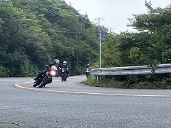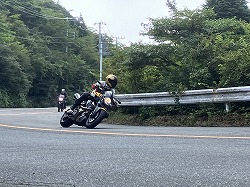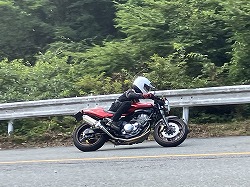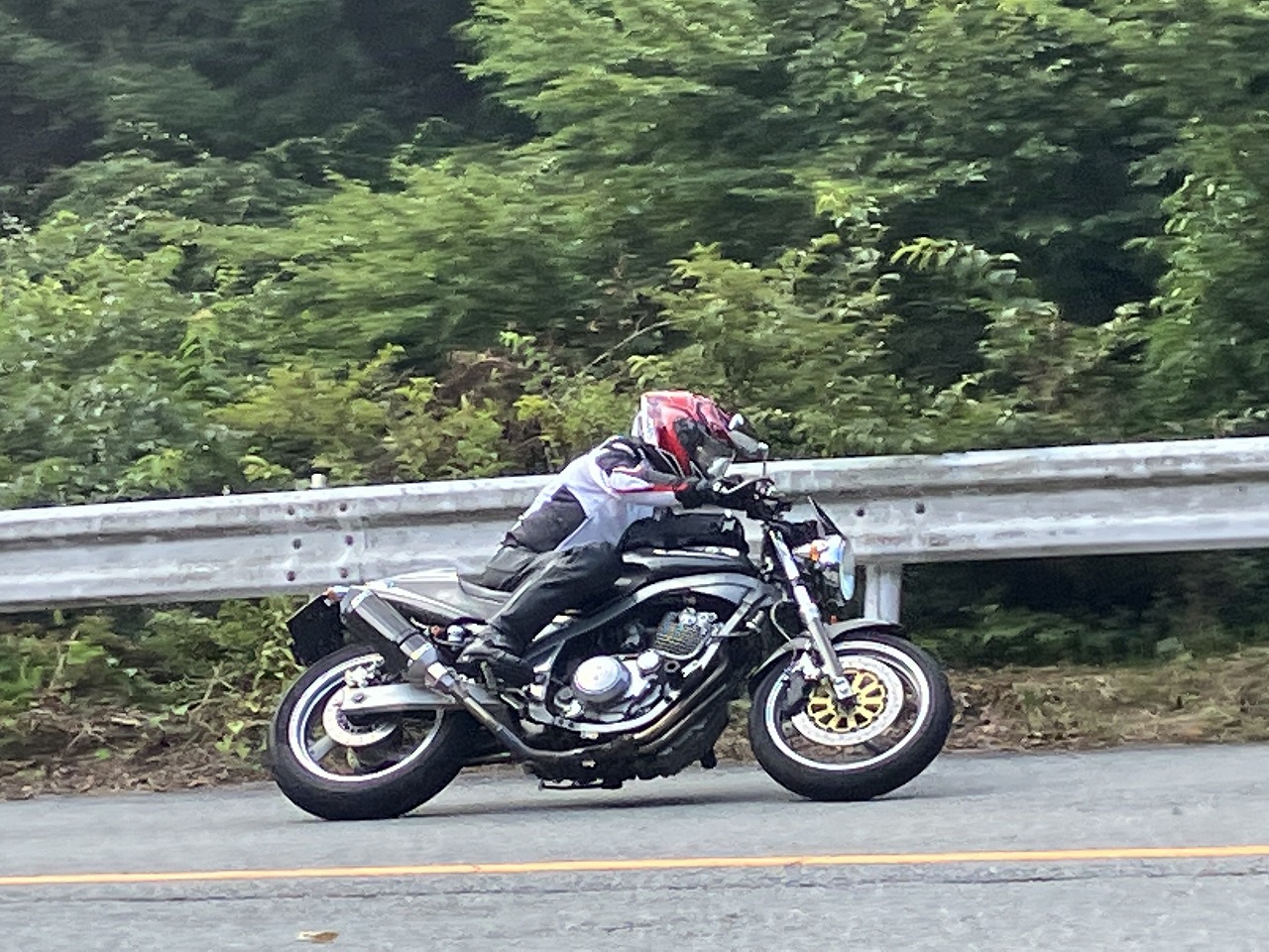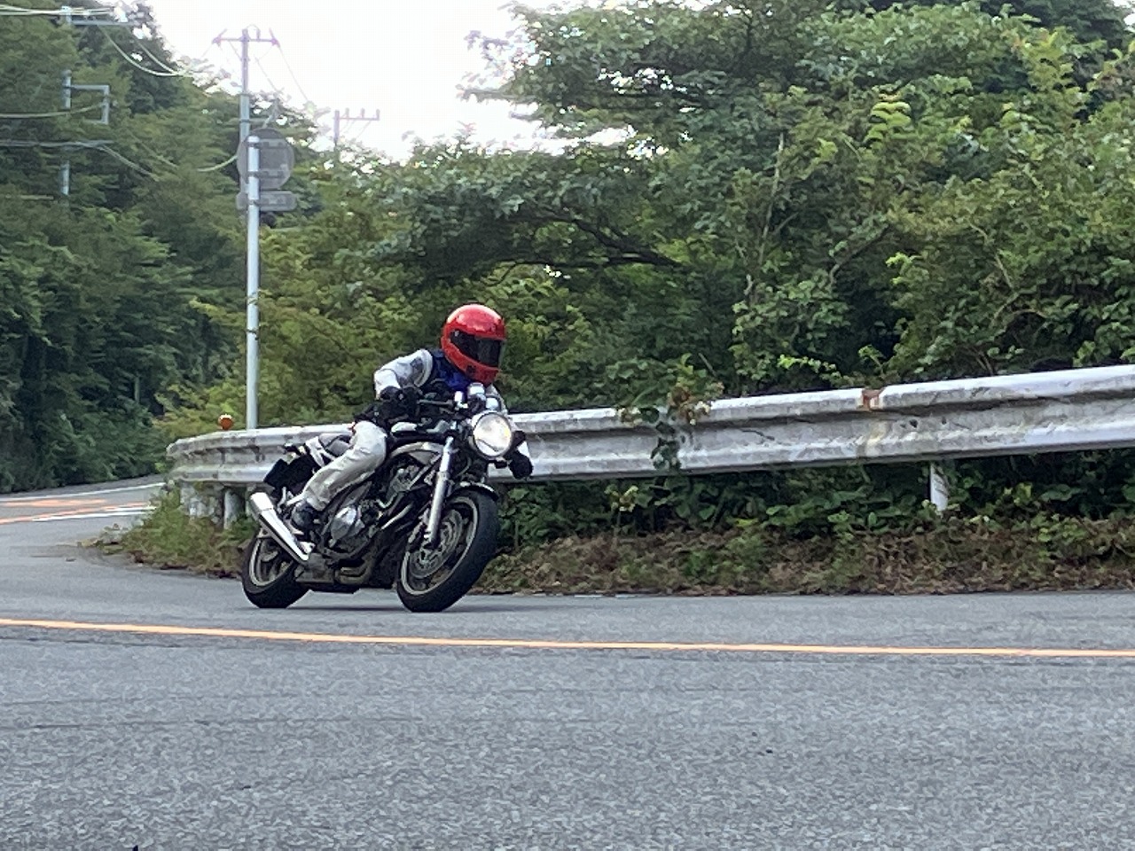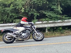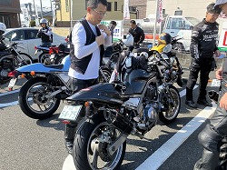 kamu氏のバイクの特徴は、誰よりも汚いことです。汚さ故にすぐわかる(笑) 同じ黒のIV型ですが、イマニシ氏のマシンはたっぷり愛されて生来の美しさに磨きがかかっています。 まいど大観山までの参加はFish eye氏。250で伊豆スカはちょっとキツいらしい。そーだよね。 |