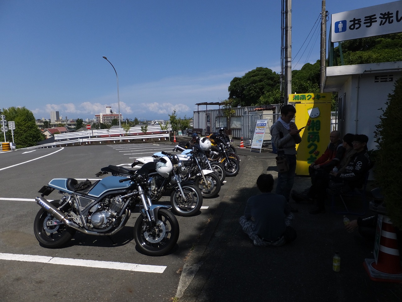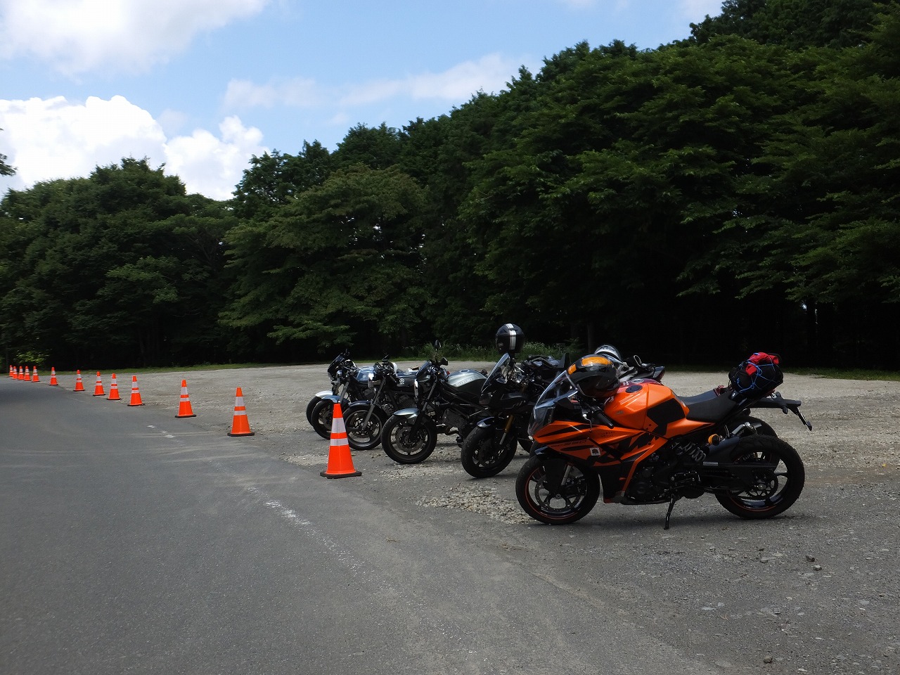 先に停まっているバイクがあると、それとなく並べるバイク乗りの習性よいですね。 SRX乗りの場合、「きちんと並べる」のハードルが異常に高く、 だいたいみんな、好き勝手な向きにバイク停めることが多いんだけれども。 そんで、やっぱりみんな日陰に勃ちますよね。暑いからね。