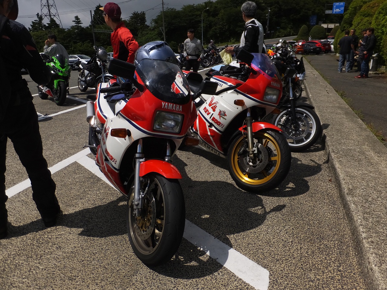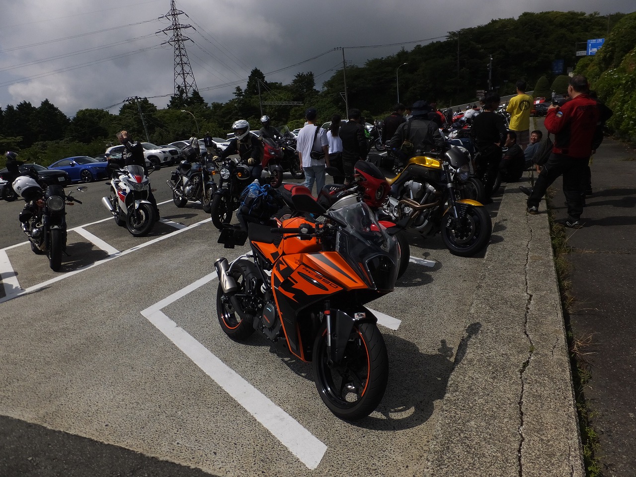 RZV500仲間とターンパイクを上がって来ていたTickler氏。 岡崎からだと日帰りで往復500kmを超えるのに、当たり前のように来てるの、まいどやヴぁすぎる。 大観山は想像していたほど暑くなく、 ときおり霧が流れて涼を運んでくると、何処からとなく歓声があがっていました。