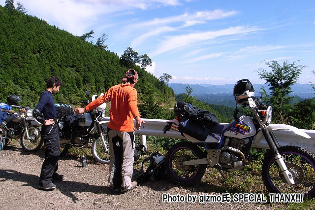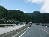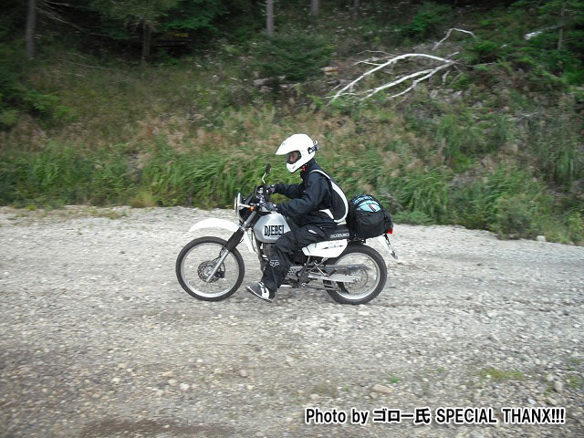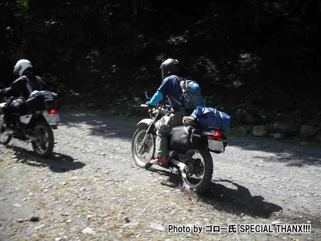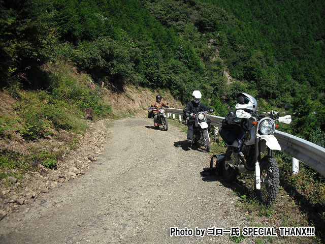 最初の給油を終えた後、関東下道組の3台はアザミ嬢とお別れして、1本目の林道に突入します。