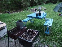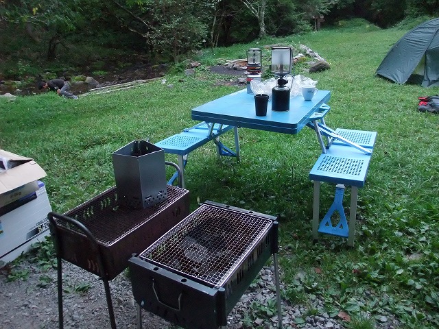 小川のほとりのちょっとした広場で、お昼を食べます。