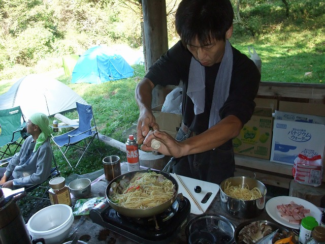 キャンプ場に戻ると、toto氏が特製ポトフと特製パスタで出迎えてくれました。