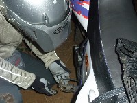 手で抑えながらふらふらの走行…。後続は「ナニヤッテンダコイツ」と思ってたかも…w