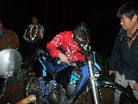 Shinji氏がXT125改セローというべきかセロー改XT125だかを調整中。
