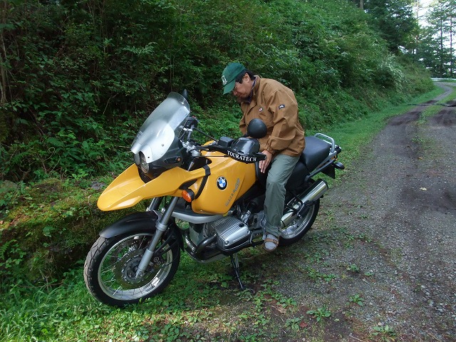 | ウヲ氏のGS(ナウマン号)を物色中のすすむ氏。 四輪では空冷ポルシェを溺愛するすすむ氏、同じドイツ車てことでそれとなく気になるご様子。 (そーいえば、ぽる買うときにビーエムも購入候補にされていましたね) 元、BMWオーナーのgizmo氏もGSを味見。 |