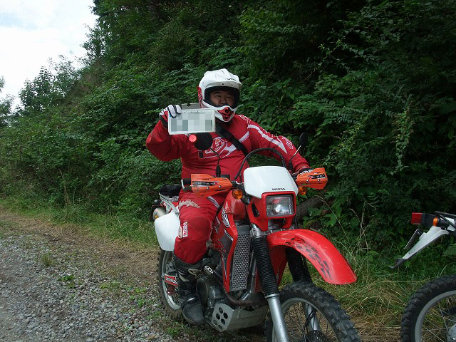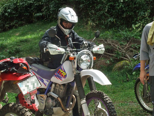 | 恐らく、ゴロー軍曹が残したと思われるブレーキターンの痕がw タヌピチ氏のレポに拠れば、あの轍をウイリーでやり過ごしたとか? Kei氏、僕のジェベ郎を試乗。「足がべた付きじゃけえ♪ラクじゃ〜」だってw 一方、僕の方はKei氏のWRに振り回されぱなしですたorz アクセル開けられない…。レーサーのレスポンスとパワーはやっぱ半端ねえっす!(汗 |