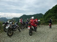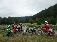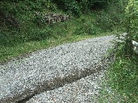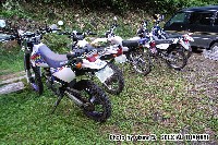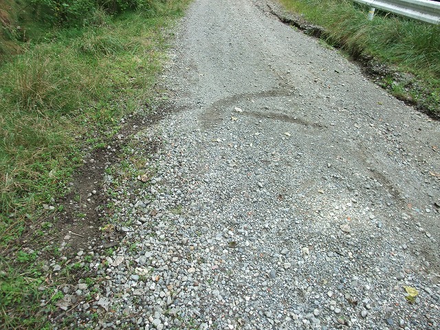 | 一方、居残り組(連泊組)は、昨晩の行軍ルートをトレース。 Kei氏が落としたナンバーは、goma氏の手により無事回収されました。ぱちぱち。 他の面子はといえば、走るのに夢中でダートに入った途端にナンバーのことなんて忘却の彼方w 僕もまーさんのセロー借りて、全力で試乗してた。何しに来てたんだっけ?僕らw 昨日、全員が小休止するきっかけとなった轍というか溝。見事に道を横切っています。 こんなのがそこかしこにあって、結構ひやひやだった。 嵌まってガードレールに刺さりかけてた漢もいたなあw |