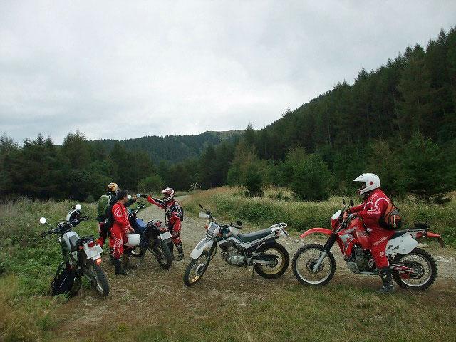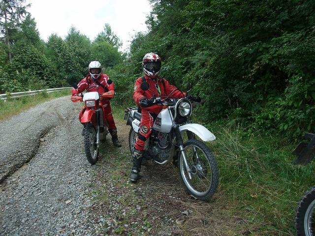 | ナンバー回収も無事済み、タヌピチ氏の先導で通称“さわやか林道”へ。 ところどころ荒れて怖いところもあるんだけれど、気持ちよく走れました。 ここで再びまーさんのセローと交換試乗。今度はロードで。 トライアルタイアを履き、思いっきりエアを抜いてあるため初めはハンドリングに違和感を覚えましたが、 慣れてくるときちんとグリップすることも確認できて、愉しんで乗れました。 僕のジェベ郎と比べると、車体のマスがしっかり集中していて、エンジンも緻密に回転っている感じ。 サスの状態が良かったら(完全に抜けてるらしい)、絶対に適わないなw ジェベ郎を試乗したまーさんは、つづら折れの下りを走りきった後、開口一番「これ、超おもしれえ!」 気に入っていただけたようです。オーナーとしてはとても嬉しいのですw きちんと整備しておいて良かった! |
