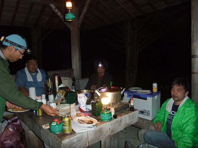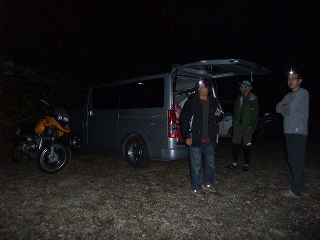 | 二日目の夕餉です。 麓のスーパーで食材を買い込み、おでんと焼肉と秋刀魚に舌鼓。ビールもウマー! 週末の高速千円を利用するため、広島組のトランポは深夜に出発です。 居眠り運転に気をつけてね! |