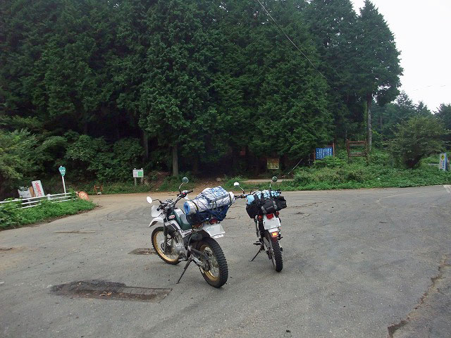 | そして、三日目の朝は雨音で目覚めるorz 濡れたテントの回収作業ほど憂鬱なものはありません。一気にテンションが下がるも、 暫くすると止んでくれて、結局、合羽は不要でした。 自分のパッキングに手間取って、朝ごはんの後片付けをお手伝いできなかったのが心残りです。 皆さんすいませんでした。テントから出たら、ぜんぶ終わってるんだもんなあ。 復路はまーさんとのんびりR142〜R299を乗り継ぐ下道ツーリング。 ちょうスローペースで淡々と走っていたんだけれど、ジェベ郎だとそれが却って心地良い。 今まで、こんなオートバイに出会ったことはなかったです。 ある意味、最強のツーリングバイクかもしれない。 |