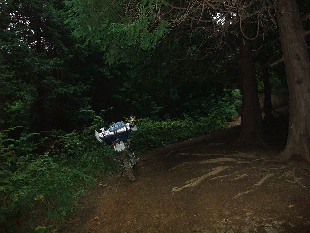 | そんな状態でも、入口から40〜50mのとこまで、様子見と称して上がってしまったまーさん。 テントやらなにやらでバイクのバランスが悪くなっているのに、スゲーよ。 この後、定峰峠を経由して小川町で解散。 なんだかツーリングを終えてしまうのが名残惜しくて、余韻に浸りながら下道でのんびり帰りました。 そんな気になれるのもスローバイクのジェベ郎ならではですね。 来年もまた行くぞ! |