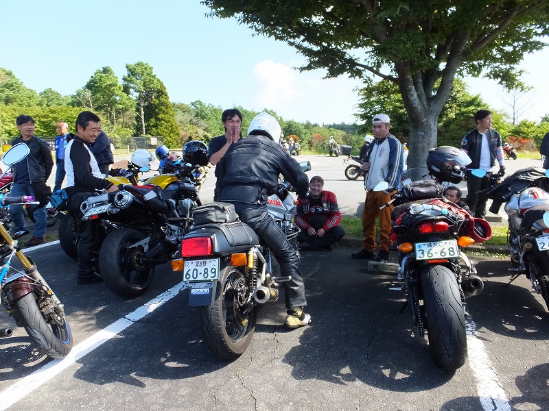 続いて、nakamura氏。 n:「タコメーターの回転数の表示がおかしい〜w」 おかしいですw n:「走行中に、ものすごくメーターが揺れる〜w」 揺れます。仕様ですw n:「メーターの揺れが気になって膝擦れなかったよ〜w」 て。擦ろうとしてたのw n:「あと切り返しでフロントからシャリシャリて金属音がする〜w」 飛ばすとプリロードアジャスターが勝手に戻っちゃうんで、 その対策としてワッシャ一を一枚、フォークスプリングに挟んでみました。 まあ、僕が余計なことしたが故の異音ですw (後で戻したよ!) 立ち上がりでフロントフォークが伸び切って、 前輪が路面に接地しているかしないかくらいまで開けないと聴こえない音なんだけどなー。 --- 短時間の試乗にも関わらず、既知の不具合は片っ端から指摘されてしまいました。 この猛者どもめ。さすがですわw でも、概ね好評価でひと安心。 無手勝流でバイク弄ってきて、ヘンな方向にマシンを造り込んでいないか心配だったから、 誰が乗っても乗りやすいバイクになっていたことが嬉しい。 峠道で僕の刀を試乗したことがあるのは、過去に3〜4人だけ。 そのうちふたりは、走り出してものの15分もしないうちに膝を擦っています。 おかしなバイクだったらそんなことできないでしょ。 雑誌やネットのインプレでは無駄に手強いイメージを強調されるイレブンカタナですが、 実はとても乗りやすいバイクなんです。 それが証明されたと思っていいよね。 僕の刀はけして整備状態がよいとは言えないから。(※注:伏線) ふたりには寒くなる前に試乗して貰えてよかった。 今年中に乗って貰うなら、今回のman3が最後のチャンスだと思っていたんです。 ぎりぎり間に合った感じだね。