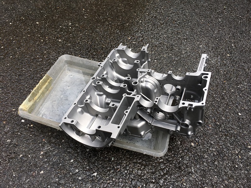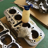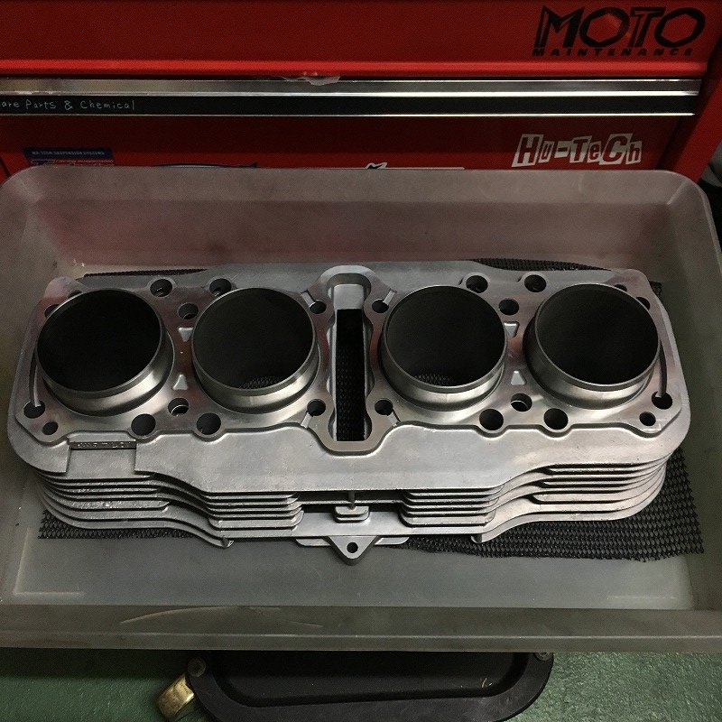 2018/4/15 シリンダーやクランクケースはウエットブラストをかけてクリアと白錆びを剥離。 渡辺さん:「まめにシリコン吹いておけば、そんなに錆びないよ」 もちろんガレーヂ保管前提の話。 ピストン径がノーマルなので、必然的にライナーは打ち換えとなります。 |