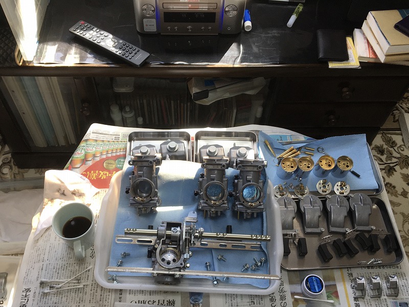 2020/3/21 悩んだ末にCR-Mキャブを諦めた。 吊るしのCRは組付け精度が悪く、一度、全バラして組み直すのがお約束。 始動のみ確認し、墨田のバイク屋に連絡して、祈るような気持ちで刀を車検に送り出した。 |