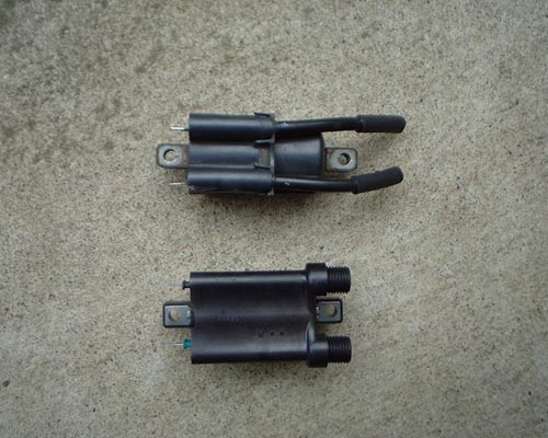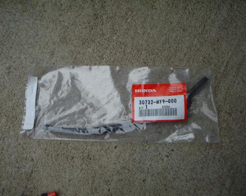 刀号のIGコイルが死んでしまった。 D○NAなどのアフターマーケット製に換装しようかと思ったけれど、 知人で壊した人を知っているので、信頼性に疑問。 付き合いのあるバイク屋、Hu-techの仁衡(にひら)さんに、 「GSX-R400のカラーを使えば、ホンダのコイルが流用できるよ。」と聞いたので、 その線でいくことにした。 ノーマルのIGコイルはコード一体型で、 僕が使っているノロジーなど社外製のプラグコードに換装する場合は、 旧いコードを途中で切って、ジョイントを介して繋ぐ。 しかし、ジョイントはどうしても抵抗になるから、 せっかく高価なプラグコードを使っても、その性能を生かすことができない。 ホンダ製コイルはIGコイルとコードが別になっていて、 ジョイントなしで高性能プラグコードを用いることができるのだ。 防水などについては一体型の方が優れている訳だから、 どちらが良いとは一概に言えないのだけれど。