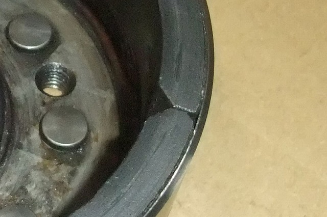 フライホイールを削ってしまえば、もっとバンク角を稼げるのではないか。 …と言うわけで、「好きにしていいよん♪」とスペアのフライホイールをバイク屋に預けてみた。 結論から先に書く。 削っても、ケースカバーをカットできる量は殆ど変わらなかったです。