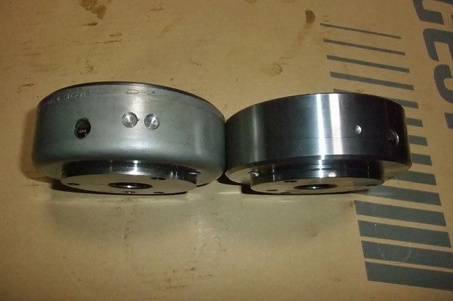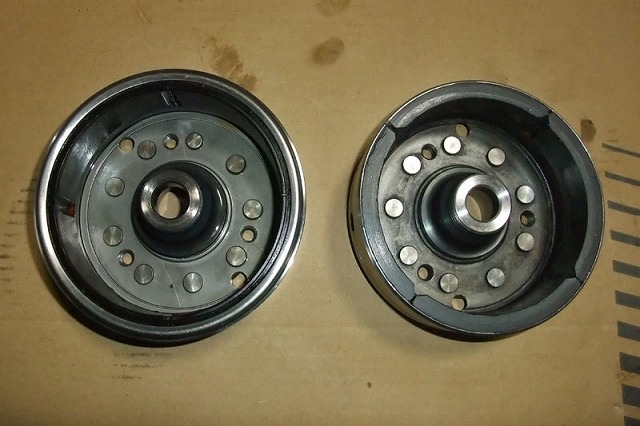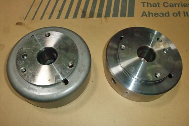 ・左:純正のフライホイール 右:加工後
