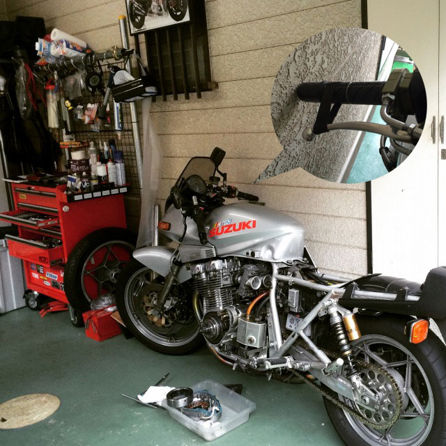 十中八九、レギュレータだと思っていたのに、ステーターコイルか。 やれやれと思いながらクランクケースカバーを外す。 ここはOilが通っている場所だけれど、カバーを外すたびにいちいちOilを抜く必要はない。 輪切りにしたタイアチューブか、タイラップでフロントのブレーキレバーを固定して、 バイクを壁に立てかけちゃえば、殆ど漏れてこないよ。 真似して大惨事になっても責任は持てませんが。 …てゆーか。