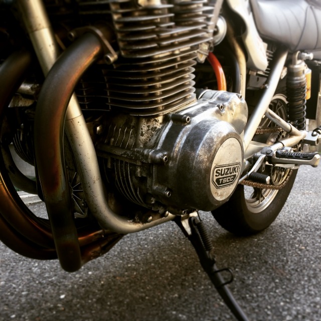 久しぶりにノーマルフライホイールの刀で走る。 当たり前だが、以前と比べて、吹け上がりは少々重ったるいものになった。 僕にとっては懐かしいフィーリングだ。このむっちりした加速感は、いかにも刀て感じで悪くない。 15年以上、こっちの仕様で乗っていたわけだしね。 んが、燃費はがくんと落ちましたorz 軽量フライホイールでの燃費は平均14〜16km/L。 以前、ノーマルフライホイールで走っていたころの燃費は約13〜14km/L。 そして、ノーマルフライホイールに戻して初ツーリングの燃費は約12.5km/L…orz 前日に交換した新品タイアが気持ち良くて、ついつい開けちゃったてのもあるけれど、これはあんまりだ。 財布が少し落ち着いたら、 そのうちまた、軽量フライホイールにチャレンジするかな。今度は強度マージンを残してね。 --- ちなみにステーターコイルもレギュレータも、まだ純正で新品が出ます。 31401-49010-000 ステータ 13,400円 32800-49331-000 レクチファイヤアッシ 18,500円 (2015年4月現在、いずれも税抜き価格) レギュはともかく、コイルは意外に安いよね。 ZやCBなんて、もう新品出ないからね。 旧車の部品価格が異常に高いヤ○ハや、生産中止のバイクの部品はさくさく廃番にしてしまう○ンダに比べれば、 スズキはちょっとだけ旧車乗りに優しいメーカーだよ!…と思うw