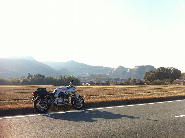 今年はあたたかい年明けだったので、正月の三日から、ふらっと走ってました。 この時期、日本でいちばん凍結の心配をせずにツーリングを愉しめる地元房総。 さすがに朝晩は冷えるけれど、昼過ぎに出ても、高速を上手く利用すれば夕方までに帰れる。 いつもの峠道を適当に流して、 帰りしな、コンビニで珈琲を啜りながら、ふと足元に目をやると、脚がOilでだくだくになってるorz