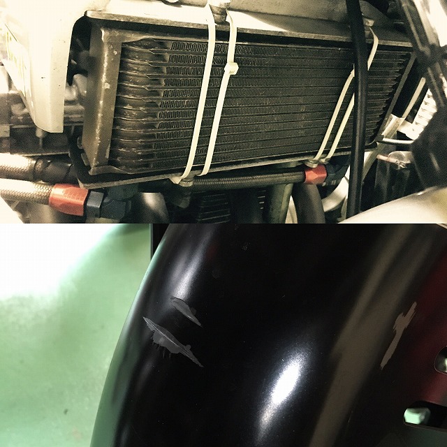 ブレーキングでフロントが下がり過ぎて、フェンダーにがんがん当たっちゃうんです。 いや。これまでも当たってはいたんですが、その当たり方が、ずっと激しいものになった。 最初から想定していたことなんで、まあしかたがないです。