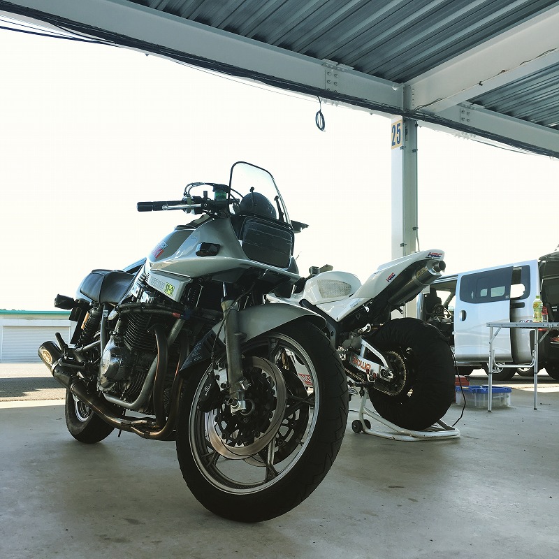 お昼頃に現地入りすると、ちょうど、けんさんが一本目の走行を終えたところでした。 自己ベストの13秒台が出たとご満悦w けんさんを見ていると、 60近くになっても、バイクの運転は上手くなれるんだなことがわかります。 もちろん努力と才能と情熱があっての話だけど…。 勇気湧いてくるよね!アーンド、自信なくすよね!!w 「いつまでこの遊びが続けられるかわからない。だから真剣。だから全力」 ええ歳こいてバイクしか趣味のない困ったオサーンたちの共通した想いです。 だからこそ、後悔のないように、めいっぱい遊ぶんだよね。