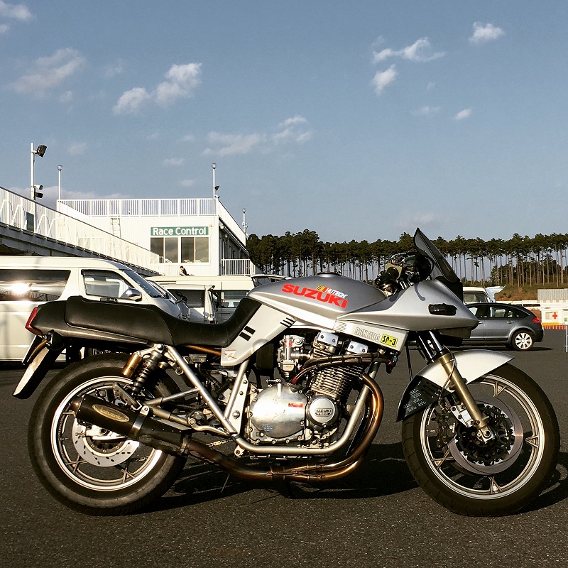 午前中にライセンス講習があった関係で13時枠はほぼ満員御礼。 混雑を避けて14時枠の走行券をゲト。 けんさんもお付き合いくださることになりました。 コースコンディションはほぼ完ぺき。 11月中旬にしては暖かい日で、風もほとんどなく、空気もからりと乾燥している。 変更したキャブセットは僕の走り方に合っている。 狙いどおり。フルバンクからアクセルを開けていくときのツキがスムーズで繋がりもナチュラル。 スムーズ過ぎて(ガバ開けドーンきゃははは的な)面白味には欠けるかもしれないが、 マシンをコントロールする醍醐味は確実に増した。 フォークのプリロードを1mm抜いたのだが、これも当たり。 フロントの安定感が勝ち過ぎていた印象が薄まり、前後のバランスがよくなった。 たった1mmされど1mm。 これなら遊べる。 限界が低いのは今に始まったことじゃない。でも、その中で遊べると楽しいw そこかしこでリアがズルズルスライドして、4コーナーなんて蛇行しながら立ち上がっているのが、 じぶんでわかるくらいなんだけれど、まー楽しい。 ホント、久しぶりに楽しく走れた。 スライドし過ぎはとうぜんのようにロスなわけで、 こりゃタイムはたいしたことねえだろと思っていたら、18秒6が出ていました。 自己ベストのコンマ1秒落ち。 クリアラップはたった1周。それも完璧なラップではなかったんで上出来です。 チェッカーが振られた後で後ろを振り返ると、白いCBRが…。 けんさんにラップされる寸前でしたよw ええ。僕のサーキットペースなんて、いい気になったところでちょっと早いツーリンg…(ry --- その後、けんさんは一足早くお帰りになりましたが、僕は続けて15時枠を走行。 16時枠の方が空いているのはわかってるんだけれど、 もう11月だし、日が暮れると寒くなりそうだし…。ホントにホントに今年最後だから。