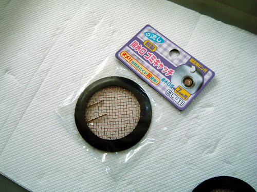 ネットカバーの正体は、100円ショップで買ってきた流しのごみフィルター。 これがサイズといい形状といいジャストフィットで、見つけた時は歓びの舞いを踊ってしまった。 検査の時だけだから、長時間使用した時の耐油性とか細かいことは気にしない。 |