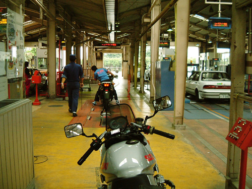 検査自体は、問題がなければ、5分もかからずに終る。 灯火類の正常稼動、各部締め付けボルトの緩み、近接騒音、光軸、すべて問題なし。 近接騒音はエンジンの回転を4,000rpmまで上げて検査する。結構びびります。 |