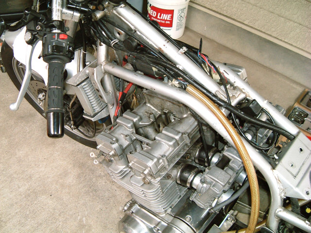 旧いバイクはフレームとエンジンの間のクリアランスが大きいので、とても整備性が良い。