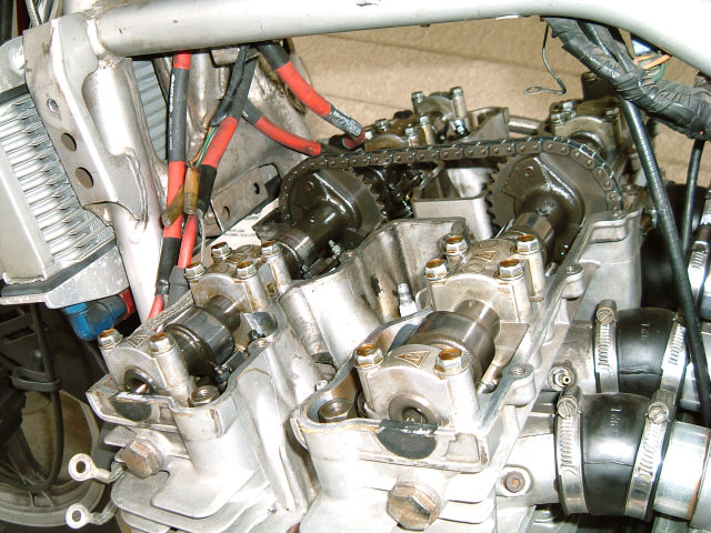 2年ぶりに開けるシリンダーヘッド。カム山にヘンなカジリとかもなくて、とりあえず一安心。