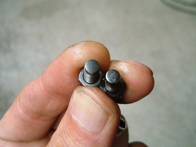 アジャストスクリュウは少し斜めにバルブを押しているから、当たっている場所だけ片磨耗する。