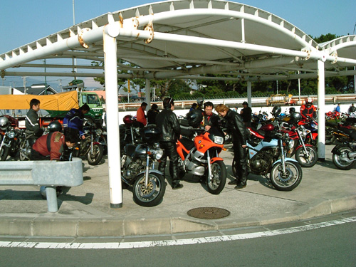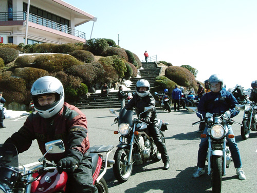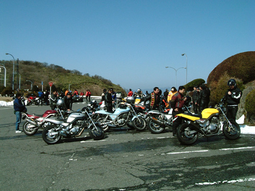 「今年は暖かいし、肩慣らしにそろそろどお?」「プレman3ちゅう感じで。」「んじゃ3/28に。」…と、 決定した2004年初回のman3。この企画、好評で3年目を迎えましてん。 SRXじゃない人が約1名おりますが…、プレだからということで大目にみて差し上げましょう。 | ||