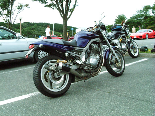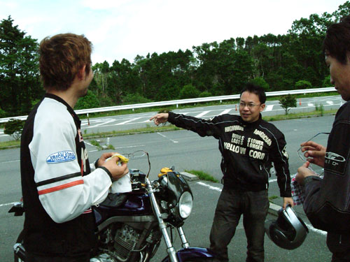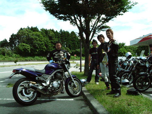 お陰さまで土曜日はたっぷり走れたのだけど、帰ってみれば台風6号が意外とのろく、 翌日の降水確率が10%に下がっていた。「天候が快復すれば、日曜も走るよ」と宣言はしていたものの、 実を言うと、僕の中では完全に日曜は「捨て」モードだったので、ちょっとモチベーションは引き気味。 まあいっかということで、初のman3 2day's開催。二日目も10台近くが集まったです。 | ||