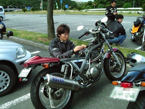 さんずいへんの漢系ではなく、正攻法で美しく仕上げられたなおや氏の3VN。 FCRのセッティングに課題を残すものの、非常に乗りやすく、良く走る。 500cc化。オートバランサー。OHLINS。ブレンボラヂアルマスター。高いほうのサンパー。お金かかってます。 スロットルロッカーは一度使うと手放せないとか。 | ||
