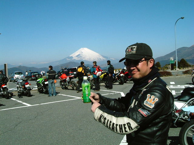 大観山のPAにて。富士山がくっきり。生茶を指差しスマイルはSRX界の重鎮、Tsuku2氏。