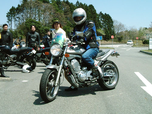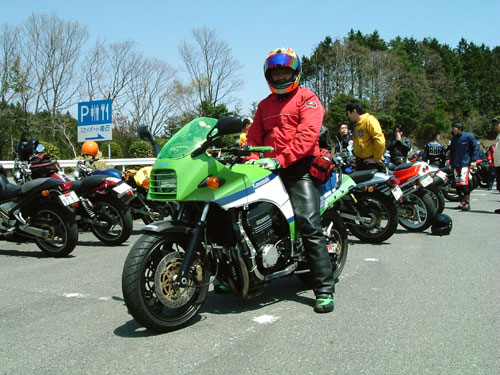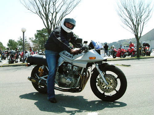 ばびさん、こけmanさん、zeroさん。時間節約のため、「一人15秒ルール」を設けた自己紹介タイム。(少な!) 車種不問man3ってことで、いつもは奥様のSRXで参加しているサクライ氏はGSX1100S刀で参戦! 追走していたSAT氏&gizmo氏によると、すごく安定していて、しかも速い!(もちろんSRXの時も。)というお話。 管理人も一応刀乗りです。このくらい愛車が似合うようになれれば嬉しいんですけどね…。 |