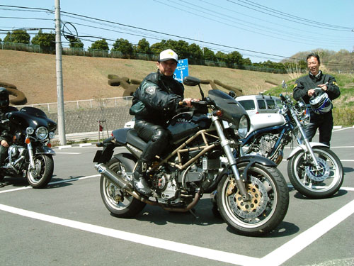 おそろいの花粉症防止マスクで、怪しさを競うmakoto@管理人と、HINえもん氏。ザ・ブラジャーズを結成(嘘)。 パーキングにて。ムルーでか!でもこの大きさのおかげでポジションに窮屈さがなくて、のびのびと走れる。 でかさは管理人のお気に入りポイントなんです。 zero氏のお連れの方です。もっとでか!(←失礼)威風堂々!ハーレーが小さく見えます。 |