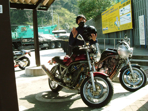 こちらもzero氏のお連れのMONSTER乗りの方。(ごめんなさい、名前を失念しました。) そして、18年間、1JK一筋。隅までめちゃくちゃキレイに手入れされた愛車を駆るzero氏です。 …と言う訳で、この後、いつもと違う道を通ってビミョーに迷ったりしつつ、今回も無事終了いたしました。 うろ憶えの道なのに、無責任に「山伏峠に行こう!」などとほざいた管理人が悪い。 |