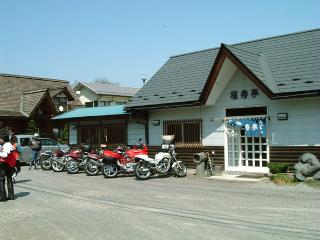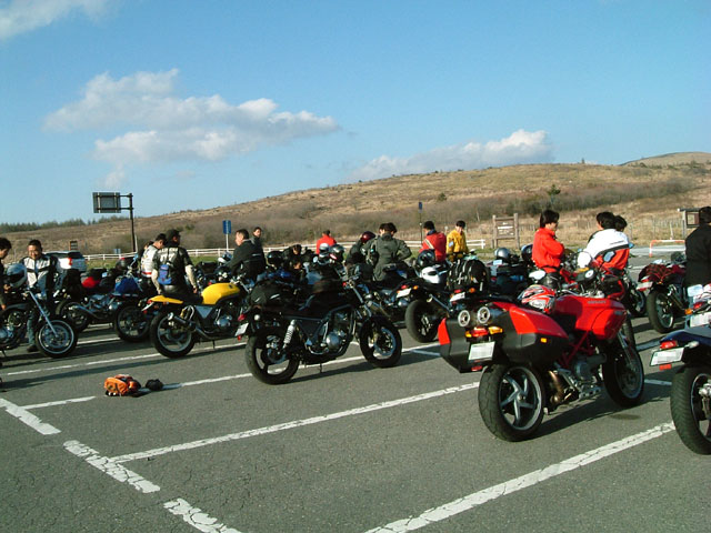 fish eye氏のズザー(軽傷でした)など、ぷちトラブルが重なって佐久で遅めの昼食。 それでもなんとか無事、白樺湖の宿に到着しました。疲れはあるけれど、先発組を追ってビーナスラインに突撃。 しかし、僕はメルヘン街道で既に集中力が切れていて、走りががたがただったのでした…。くぅ。 実は中止の危機にあった「春の陣」。幹事を買ってくださったSUM氏より皆さんにご挨拶。 心配だった天気もなんとか持ち直し、美ヶ原は抜ける様な青空。いろいろあって大変だったけど来て良かった。 |