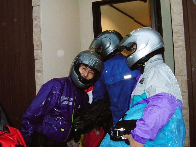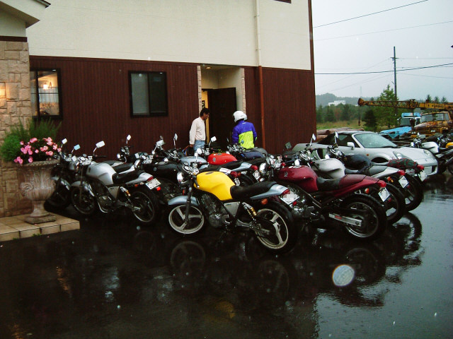 | SRXの最終型が生産中止になって早10年。 晴れでもトラブる旧車なのだから、このコンディションで壊れない訳がない。 直接宿に行ったMcCourt@管理人がgiz氏にTELしてみると、みんなまだ最初の集合地点から動けずにいた…。 だってほら、オートバイに乗る日じゃないですよ。台風来てるし…。 んが、SAM氏に至っては余裕の笑顔すら浮かべる。日和った自分の未熟さを痛感する瞬間。 | ||